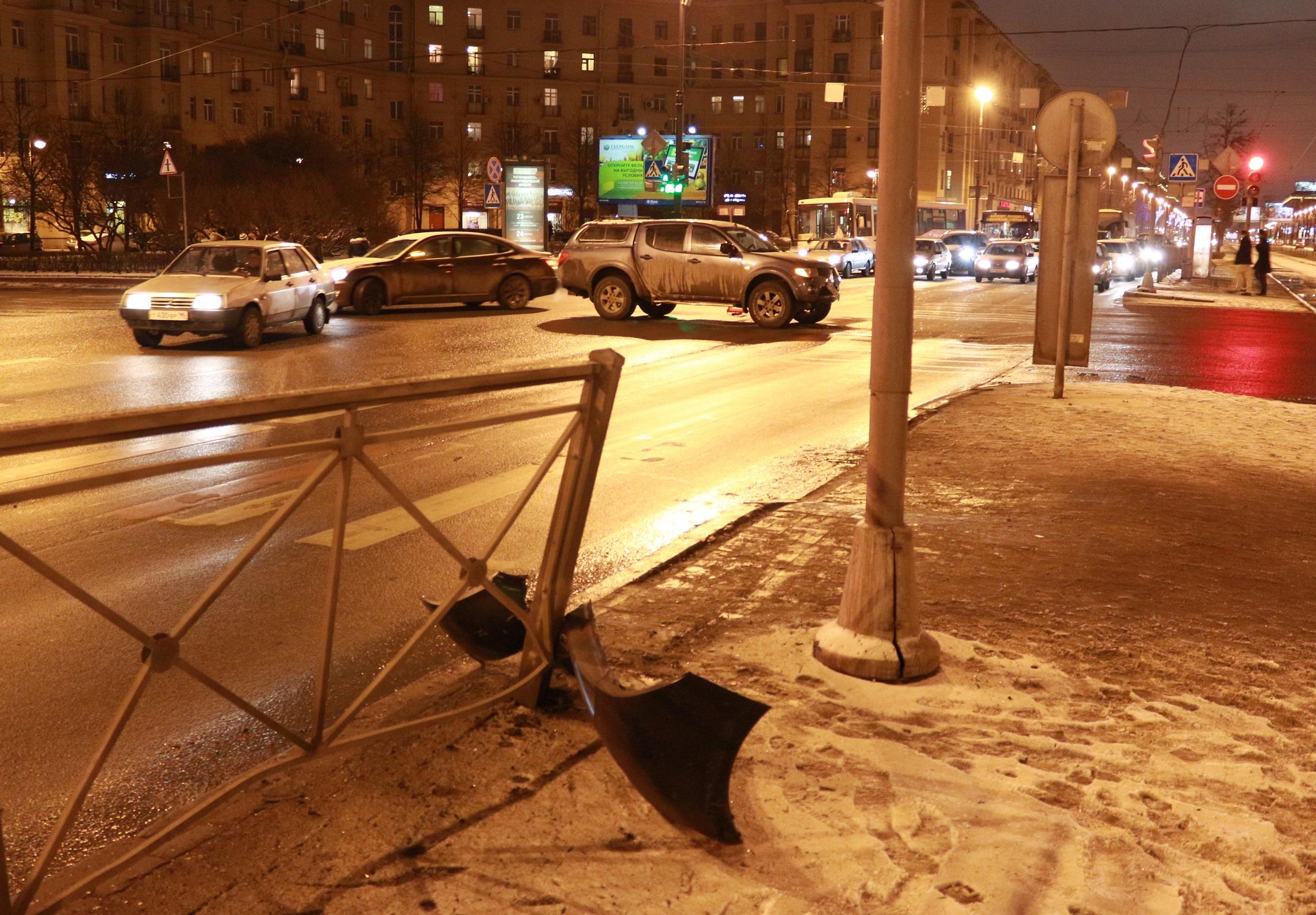 Mitsubishi L200 начал движение со светофора по Фрунзе в сторону Варшавской, Toyota Yaris двигался по Московскому в сторону центра. Ярис на высокой скорости правым боком сносит бампер L200, отлетает в ограждение, получает повреждения от ограждения, отрекошечивает на середину Московского и останавливается. Разыскиваются свидетели, видевшие детали происшествия.