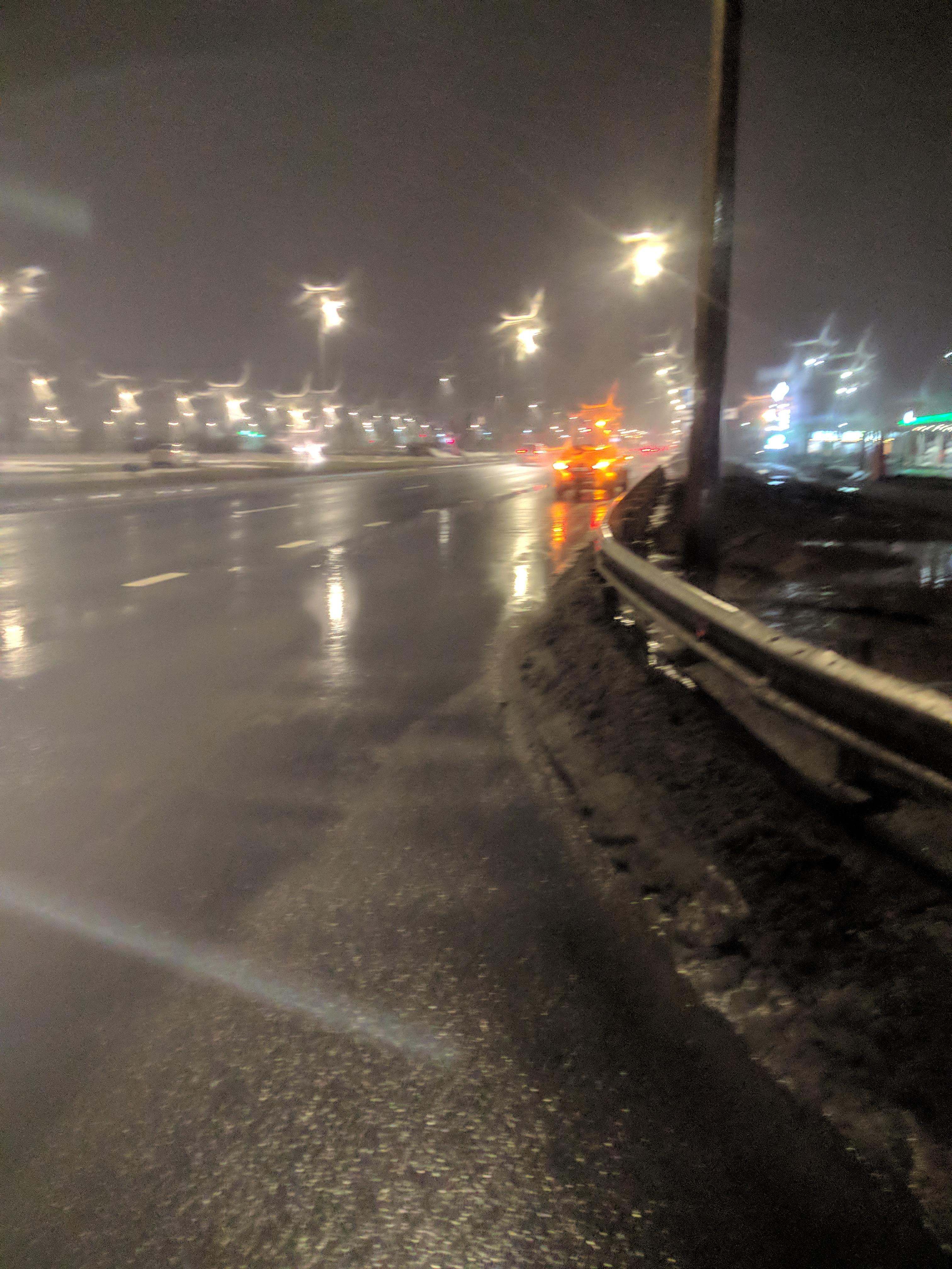 Белая Шкода двигаясь в среднем ряду при перестроении в правый ряд въехала в бок Даже Весте. От удара улетела на газон слева. Фото после дтп.