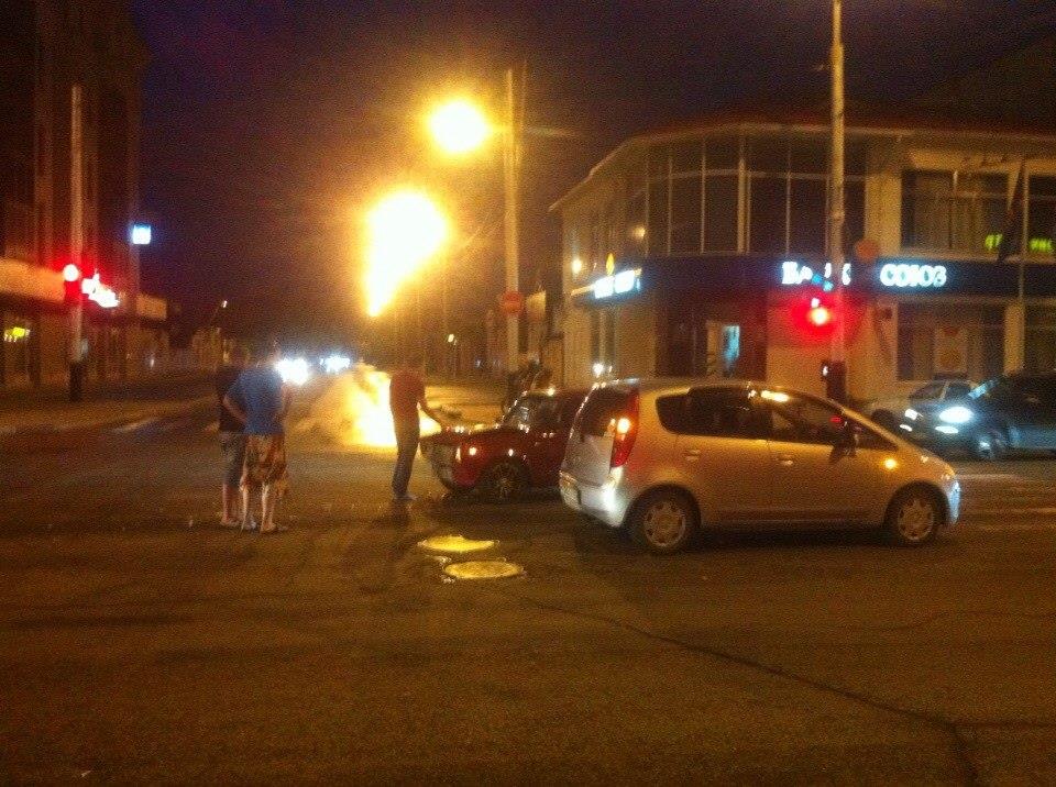 Участники ДТП ВАЗ-2105(красного цвета) и Mitsubishi Colt(серебро). Водитель Mitsubishi Colt скрылся с места ДТП