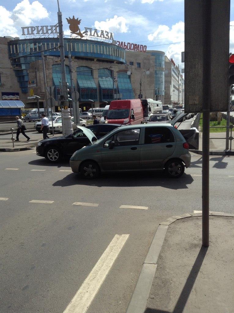ВАЗ-2115 проехал на красный и по касательной задел Дэу-Матиз, ехавший на зелёный. Водитель ВАЗ-2115 - дальтоник, или шизоид - в протоколе путает цвета. Тел. +7(495)7497800.