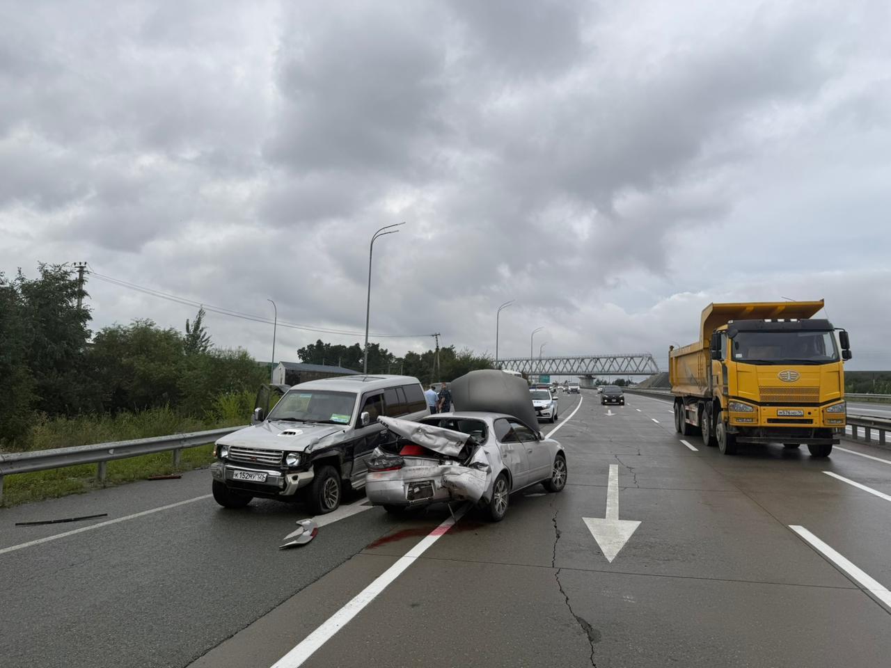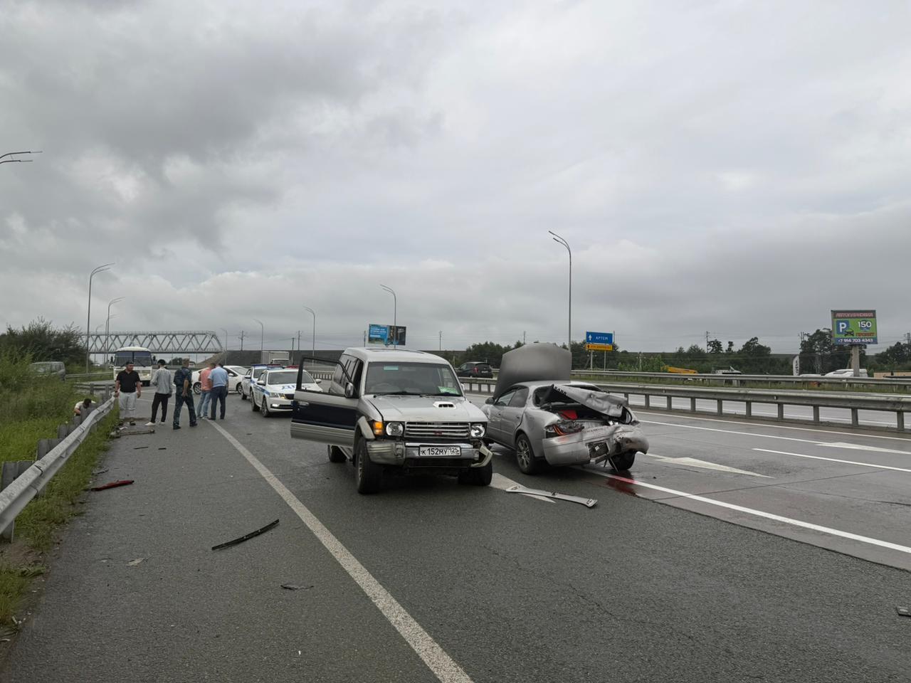 31.08.2025 в 07:45 час. перед поворотом на аэропорт "Кневичи" белый минивен Хонда-Степвагон порезала Митсубиши-Паджеро. В результате посоедний совершил столкновение со стоявшей на обочине Тойота Спринтер-Мурано