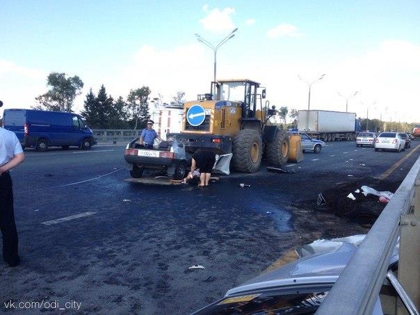 20августа 2014г. Минское шоссе. 35 км. Между съездом на Жаворонки и Лесным городком. Ваз 2109, серебристый, врезался в строительный трактор. Ищем свидетелей. Запись видеорегистратора. Спасибо.