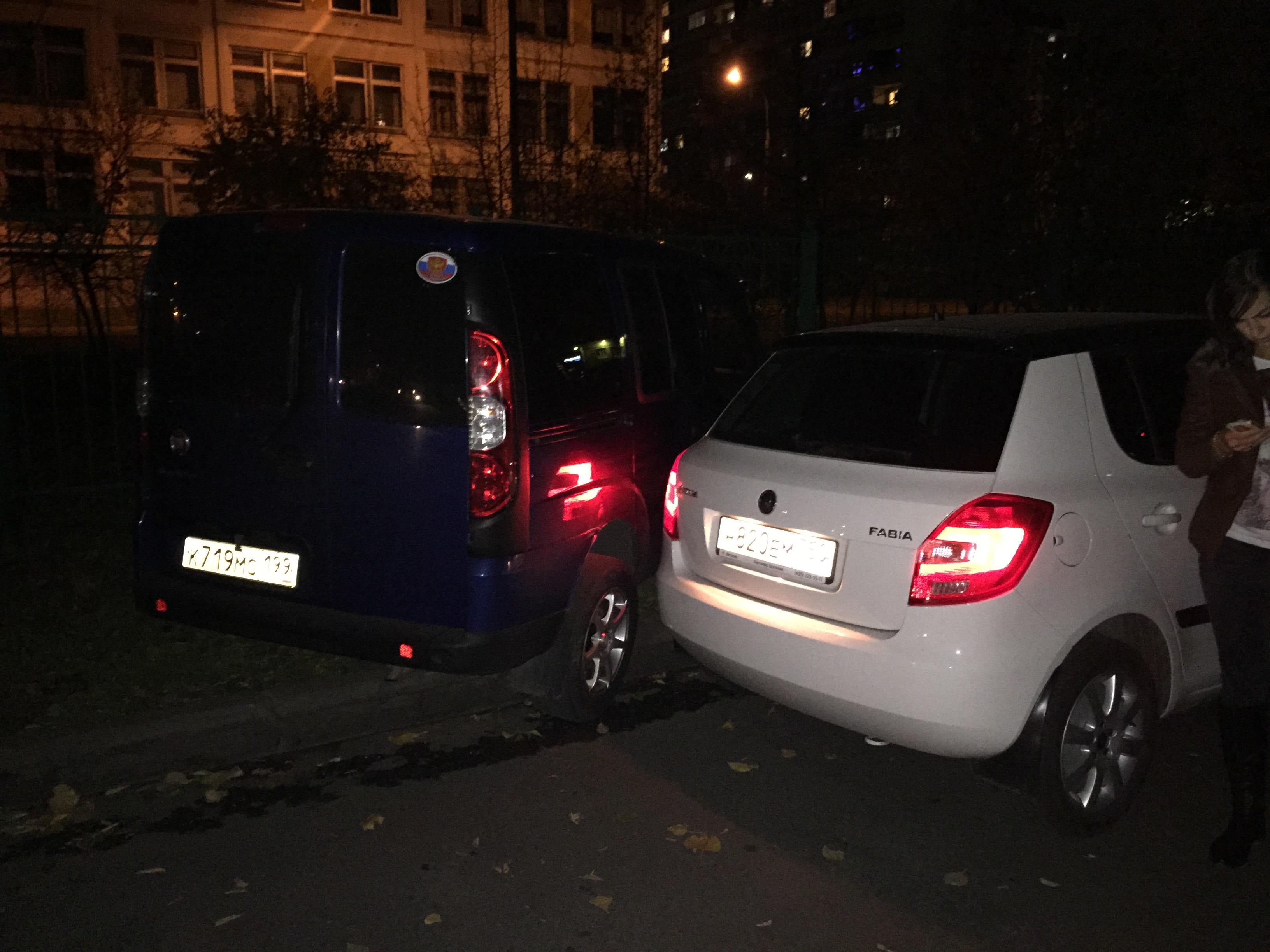 около школы №1415 автомобиль шкода фабия гос номер н820ем750 двигаясь задним ходом ударила автомобиль фиат К719мс199