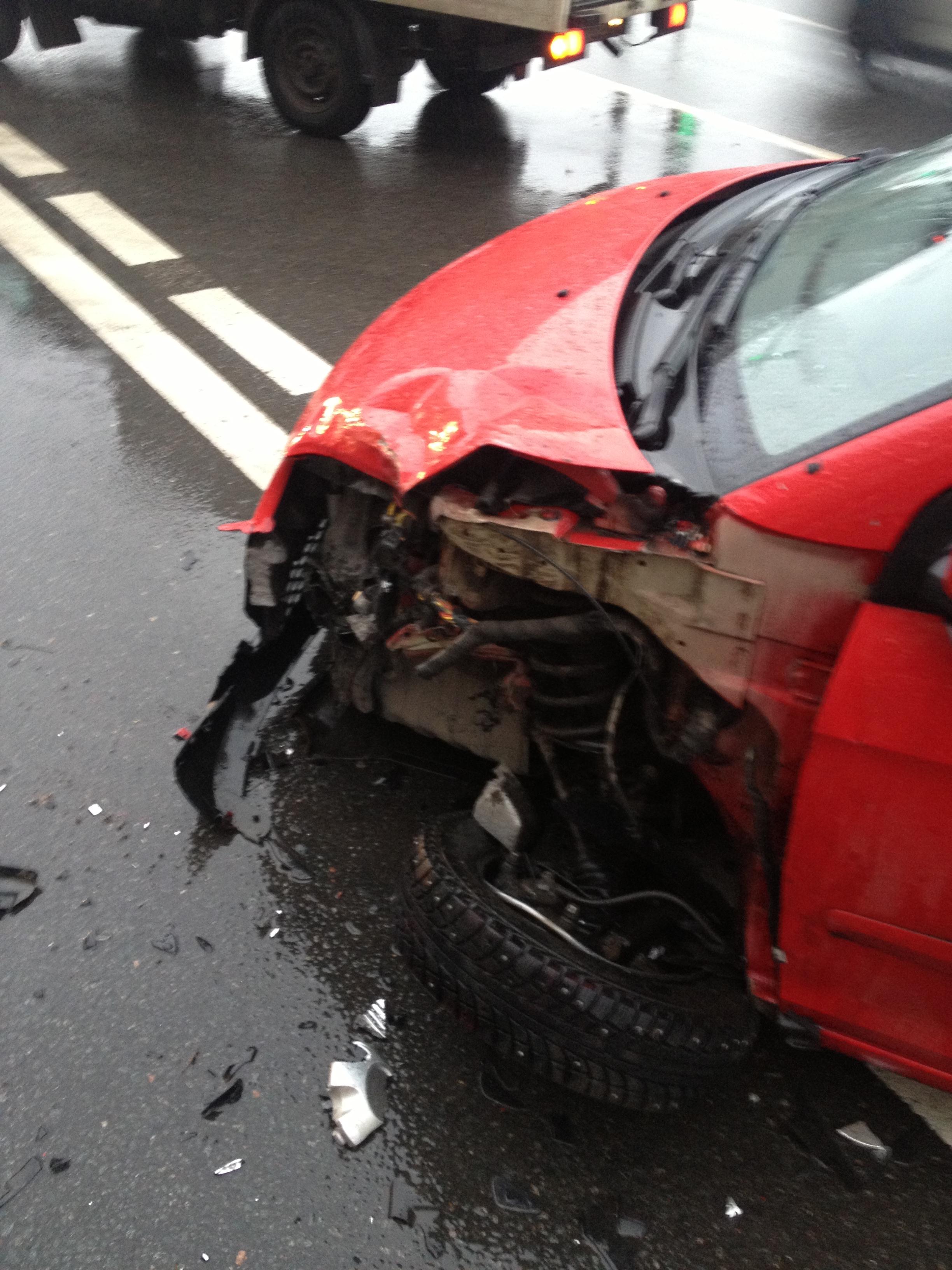 Авария с участием красной легковой машины и черного джипа на пересечении Смоленской набережной (дом 2) и Бородинского моста