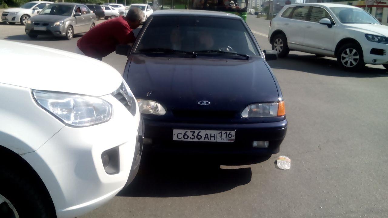 Чери Тигго белого цвета и Ваз 2114 темно-зеленого цвета. Ваз 2114 проехал на красный цвет светофора