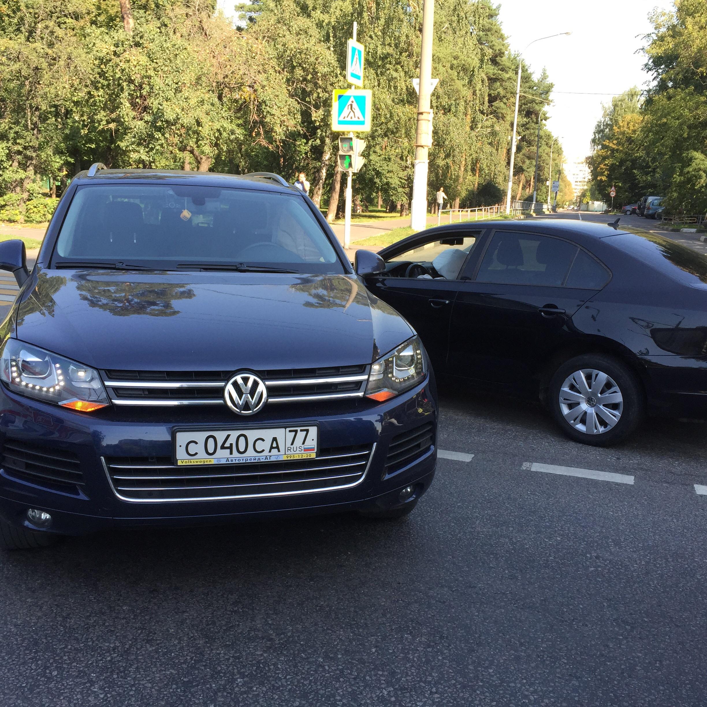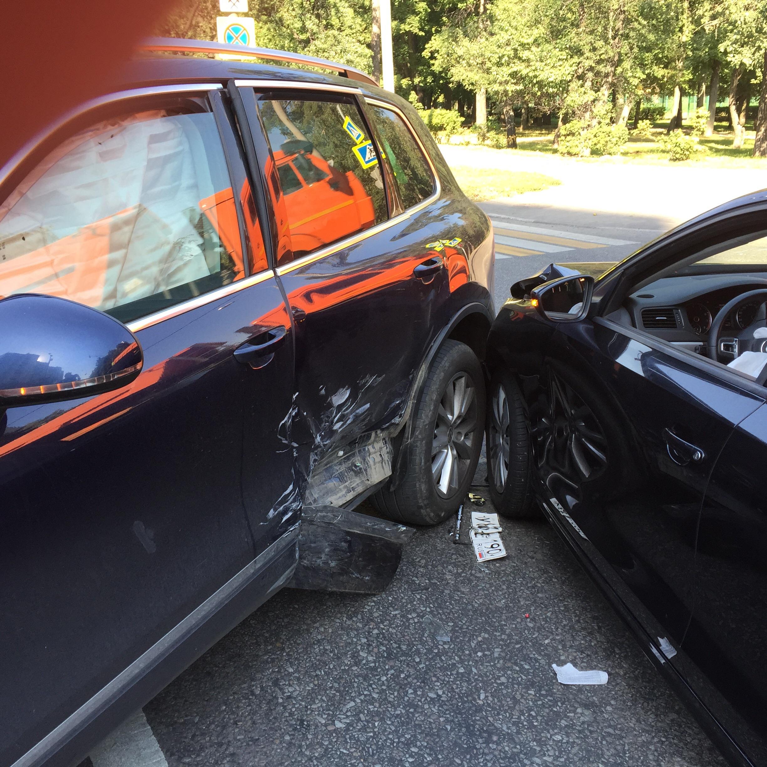 Столкновение Фольксваген Джеты в Фольксваген Туарег на регулируемом перекрестке ул. Тимуровская с ул. Бакинская