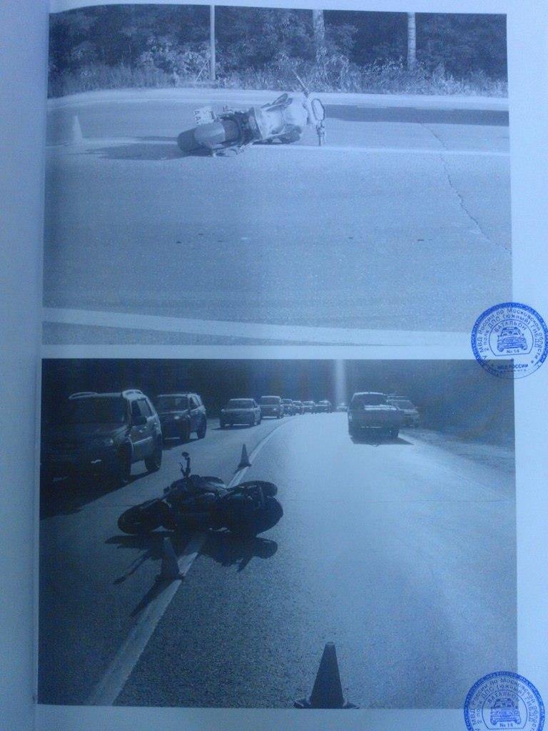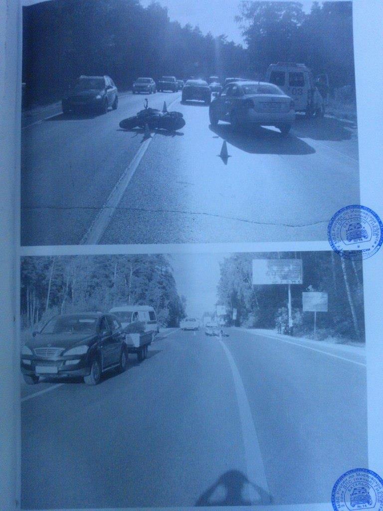 Мотоциклист выезжал со второстепеной дороги, на загруженое егорьевское шоссе, слева ему устопила фура, справа был большой прогал между машинами, выехав на шоссе в сторону Москвы, и проехав метров 40 был сбит водителем внедоржника с прицепом. Следствие настаивает что мотоциклист виноват сам, ищутся свидетели!