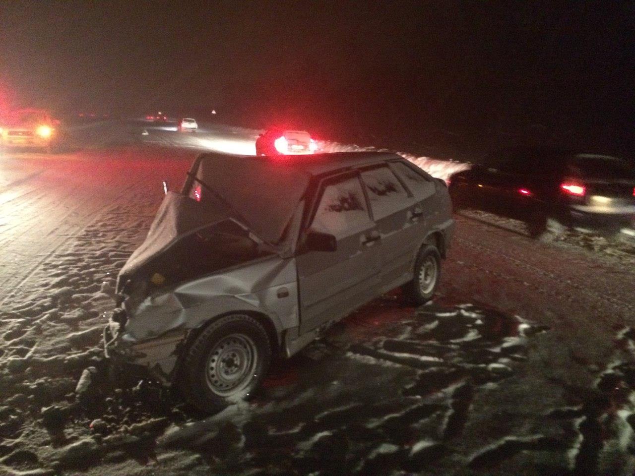 Лобовое столкновение Mitsubishi L200 и ВАЗ 2114.