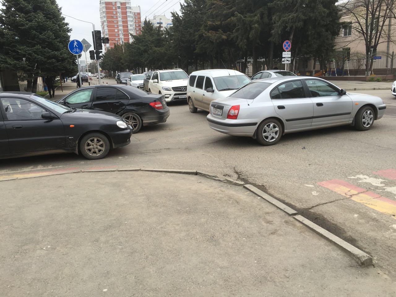 Столкновение Хундай Солярис ГН о502ро123 двигался по ул. Гагарина от Тургенева в сторону ул. Герцена и мерседес С-класса ГН а099ом 123 двигался по ул. Воровского от ул. Атарбекова в сторону ул. Красных Партизан.