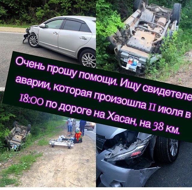 Очень прошу помощи. Ищу свидетелей аварии, которая произошла 11 июля в 18:00 по дороге на Хасан, на 38 км. С участием серебристой тойота Премио и Тойота Сурф. 89241208855 89241363826