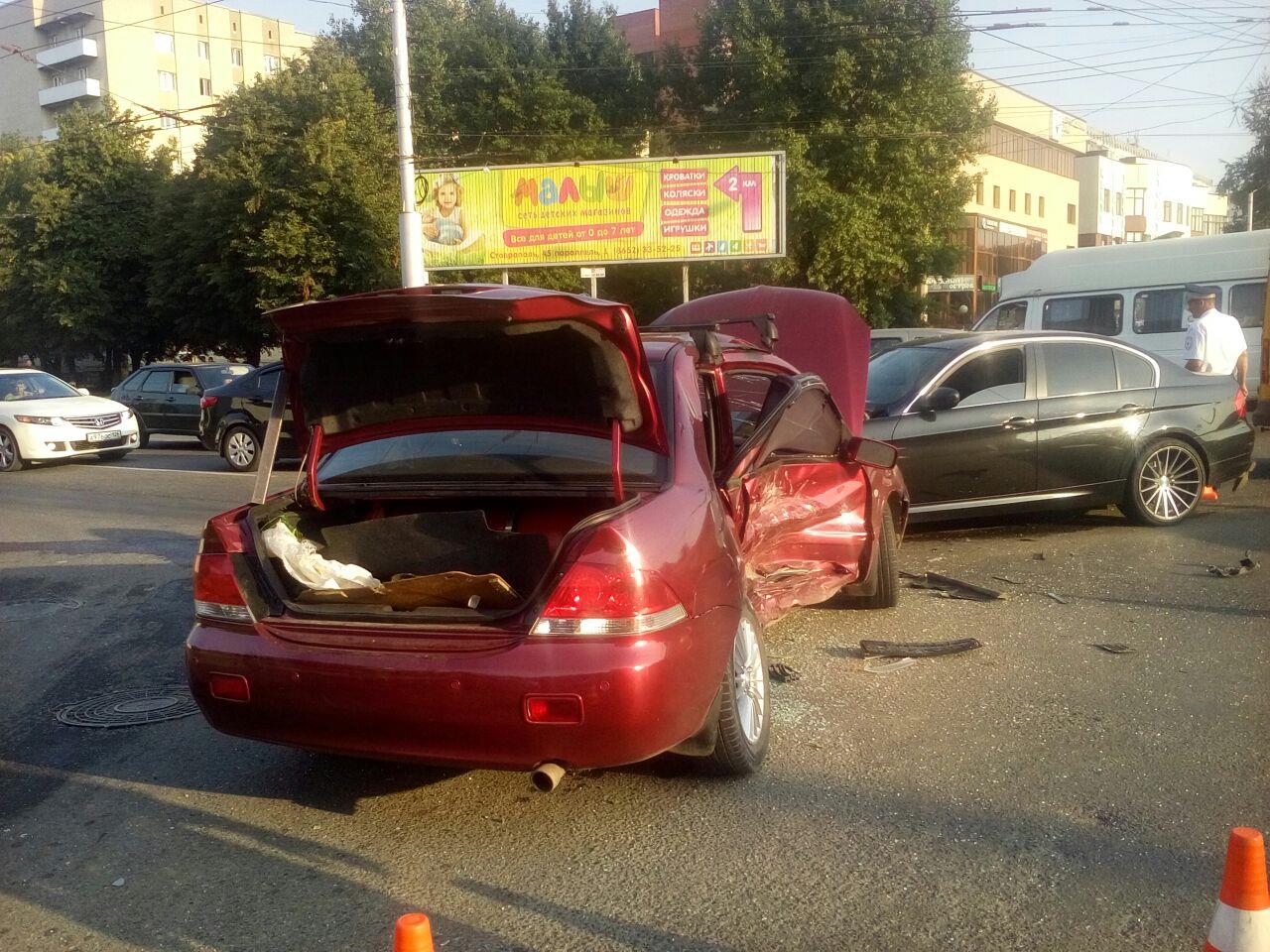 Mitsubishi Lancer поворачивал на разрешающий сигнал светофора с улицы 50 лет ВЛКСМ на улицу Тухачевского в сторону улицы Доваторцев.БМВ двигалась прямо по 50 лет ВЛКСМ в сторону парка Победы. По словам очевидцев, за рулем тонированного БМВ, который не собирался тормозить, находился 17-летний водитель Женщина заявила, что за рулем была именно она, хотя присутствовавшие на месте события граждане уверяли, что за рулем находился подросток.