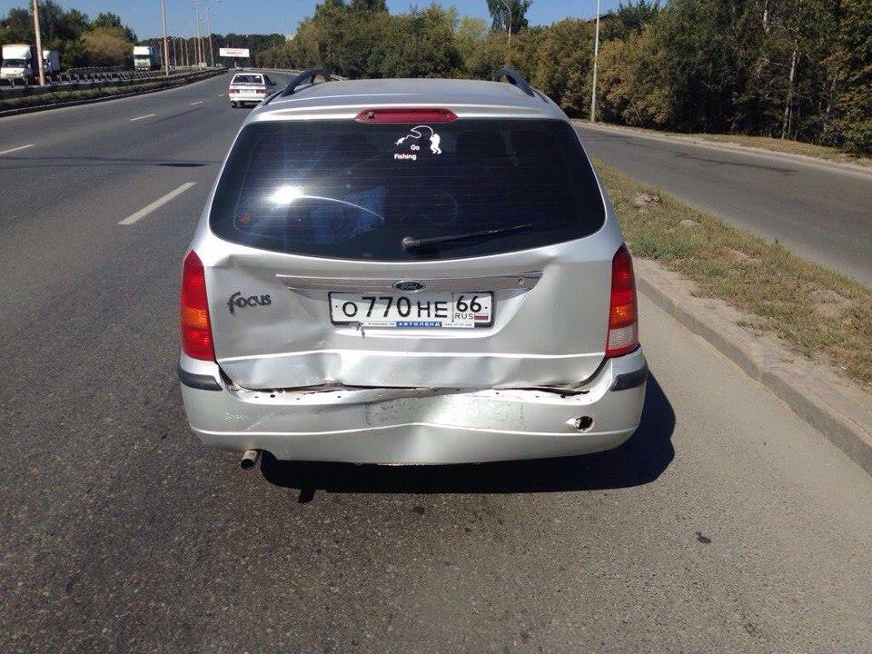 ДТП произошло около 10:45 утра перед эстакадой через ул.8 Марта по объездной дальше заправки Лукойл (Крестинского, 40) и пешеходного моста. Серый BMW х3 е708ру 96RUS выезжая на объездную трассу с ул.Крестинского, врезался в заднюю часть серебристого Ford Focus универсал о770не 66RUS, который также выезжал в правый ряд. В BMW сработали все системы безопасности, поврежден передний бампер, крыло, фары. У Ford деформирована дверь багажника, повреждён задний бампер.