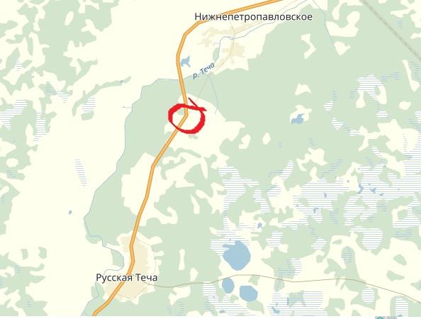 На выезде с. Нижнепетропавловское от моста примерно 500 метров в сторону с. Русская Теча