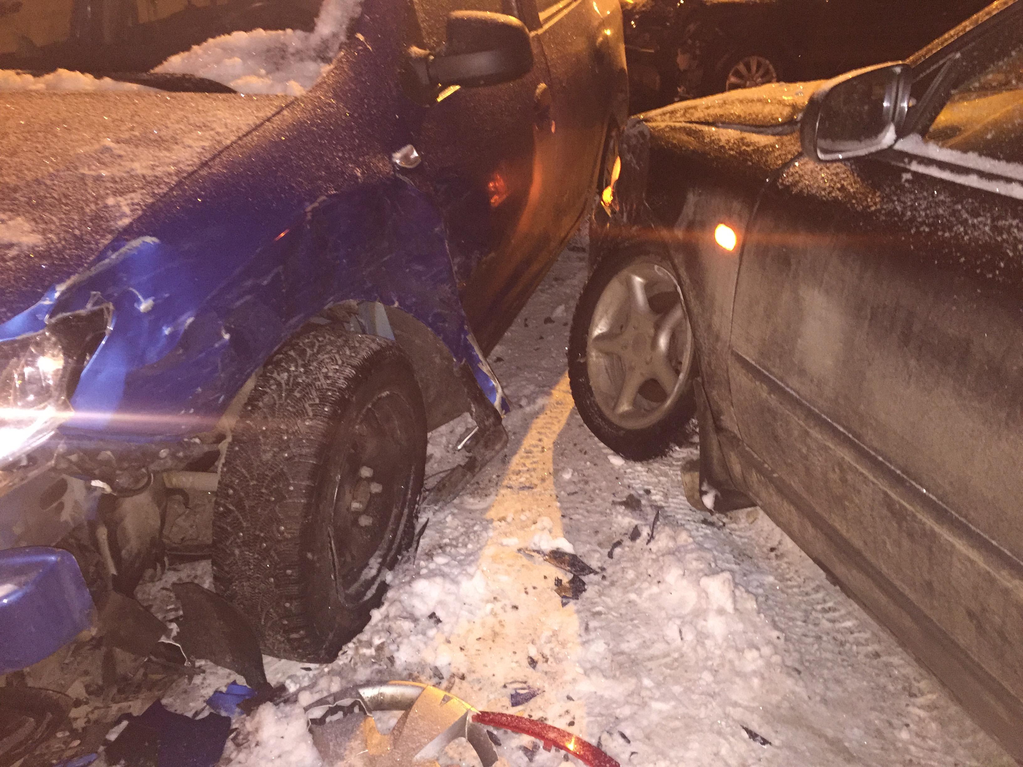 Авария произошла около закрытой стоянки вертолетного завода, участники шкода и фольцваген пассат , обе выехали на 4 припаркованные машины