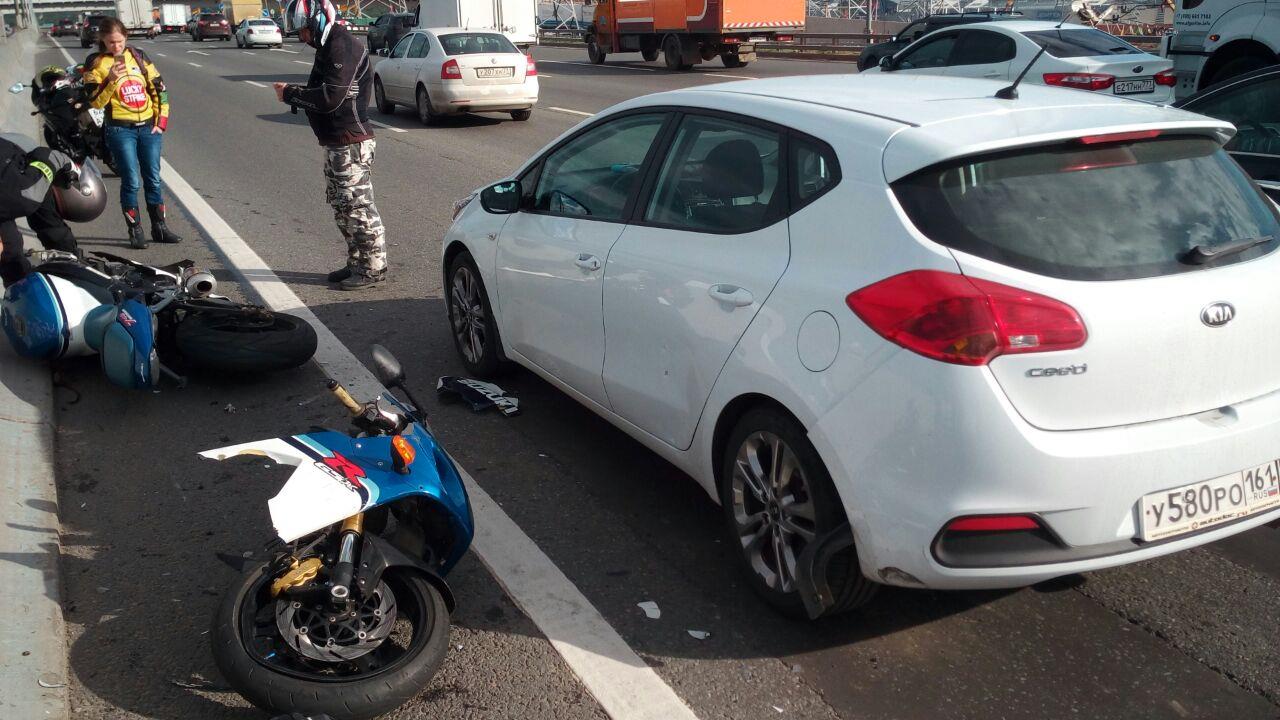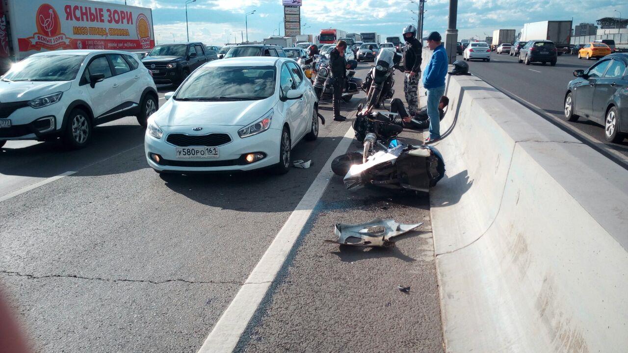 МКАД внешка напротив ИКЕЯ Тёплый стан. Спортивный мотоцикл и машина киа сид, около отбойника. Ищем свидетелей с регистратором.