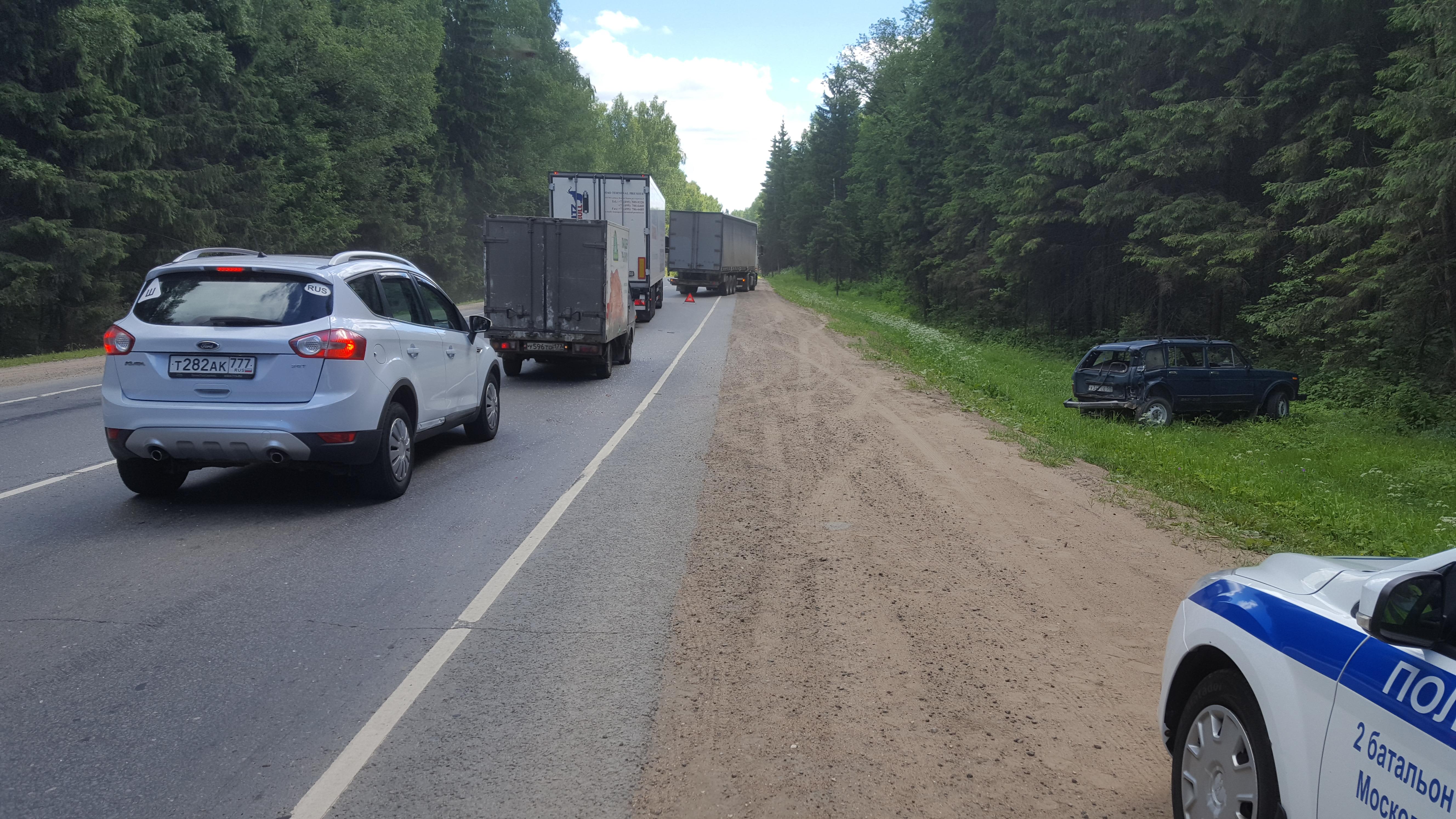 В автомобиль НИВА 2131 при развороте на трассе въехала фура . Нива улетела в кювет. Может у кого - то , кто стоял в это время в пробке в этом месте работал видео регистратор.