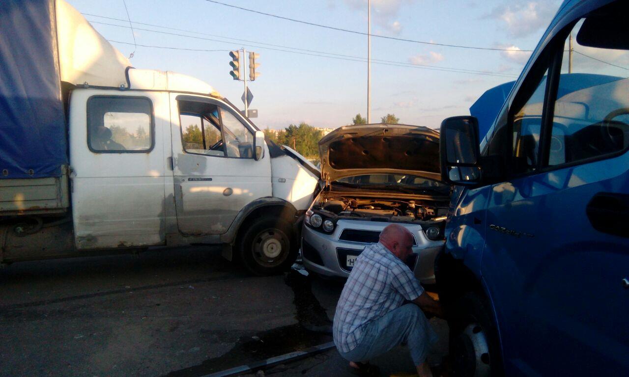Газель, движущаяся по пр.Ленинского Комсомола со стороны Швейной фабрики ударила в Шевроле, которая произвела поворот налево со стороны встречного движения по пр.Ленинского комсомола, и в момент удара находилась на стороне ул..Щорса.После удара Газель протащила боком Шевроле, что привело к удару во вторую Газель, стоящую на перекрестке за стоп- линией со стороны ул. Щорса.Ищем свидетелей с регистратором, проезжавших по пр.Ленинского комсомола в момент или после ДТП.