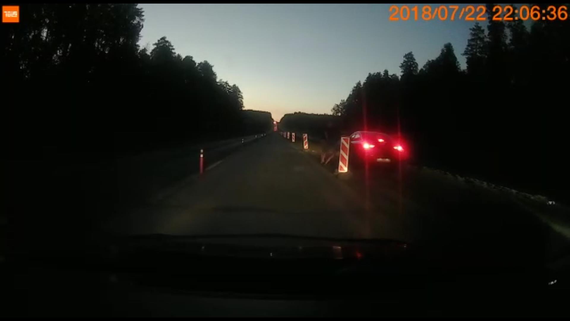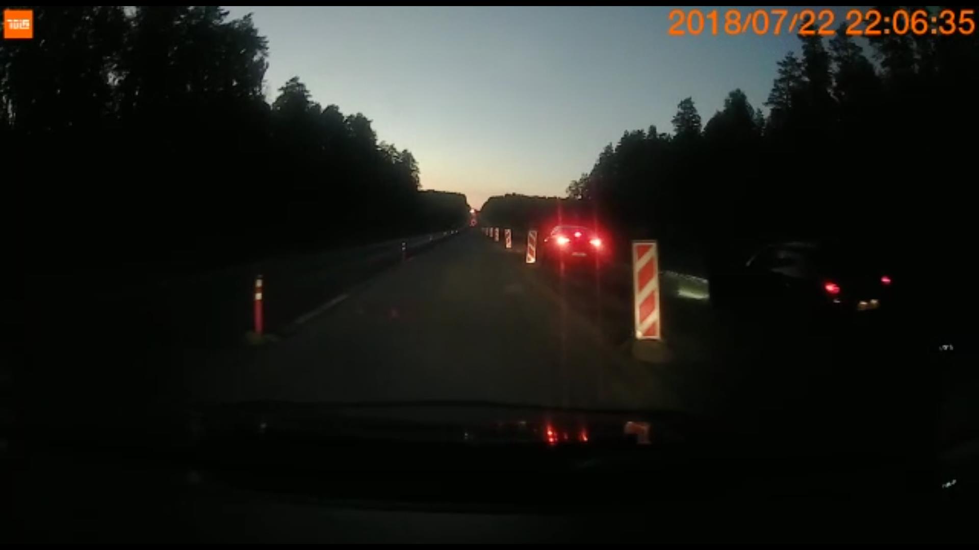 Автомобиль Киа выехал на встречную полосу,затем при перестроении обратно в полосу(через ремонтные ограждения) врезался в бок темного автомобиля. В пострадавшем автомобиле ехала пара с ребёнком. Есть видеозапись регистратора, обращаться на почту miss.nika-kostina@yandex.ru