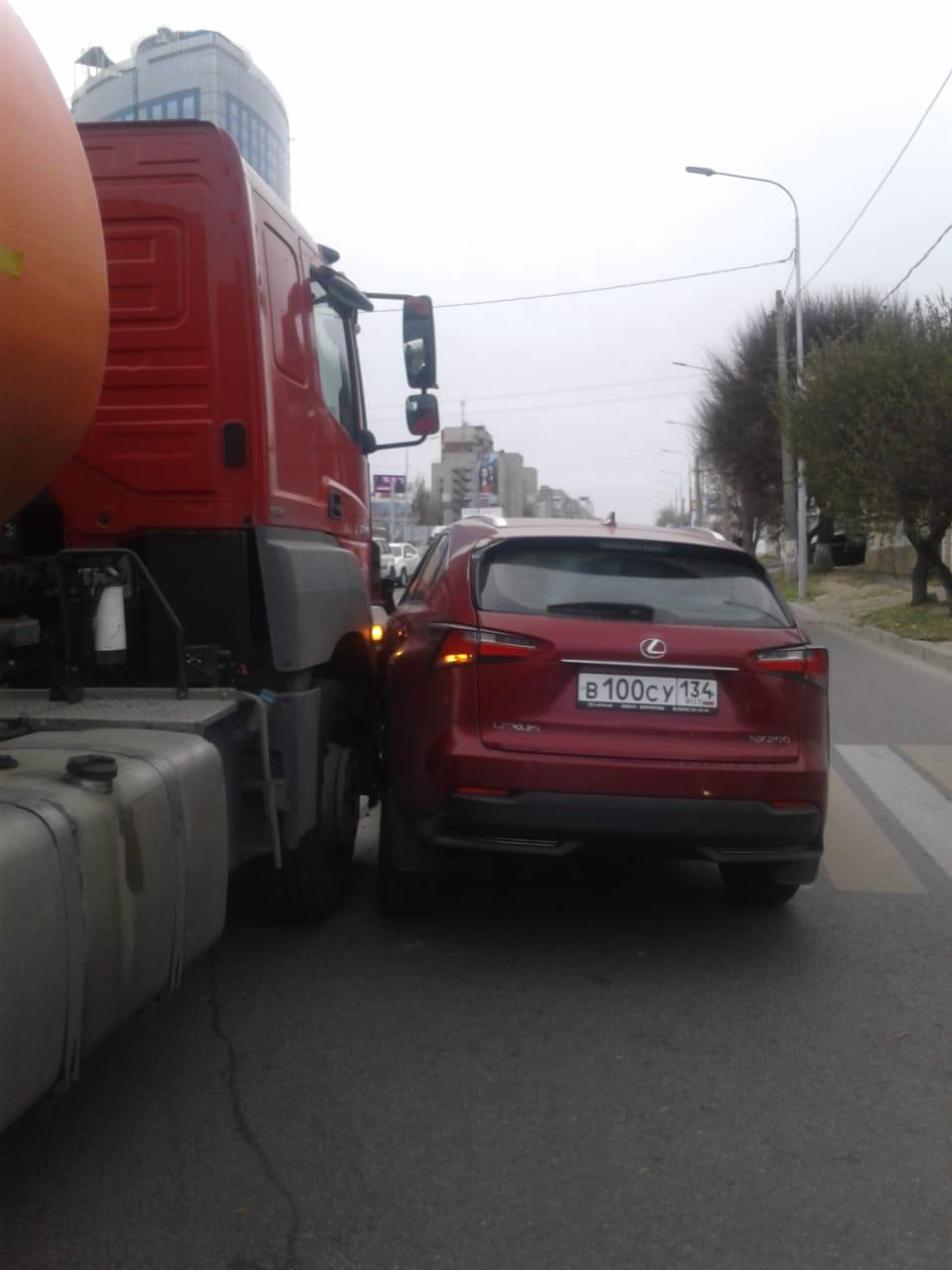 12.11.2018 в 11.00 двигалась со стороны Краснооктябрьского района в сторону Ворошиловского на а/м Лексус красного цвета, госномер В100СУ134. Спустившись с моста по второй полосе продолжала движение никуда не перестраиваясь, так как была большая пробка. Доехав до светофора, после включения зеленого продолжила движение все в той же второй полосе. Доехав до пешеходного перехода почувствовала характерный хрустящий звук слева. попыталась открыть дверь, но не смогла, так как она была зажата бампером грузовика с прицепом бочкой Мерседес, госномер У602НК777. Прошу откликнуться очевидцев аварии, располагающих записью видеорегистратора. Заранее благодарна.