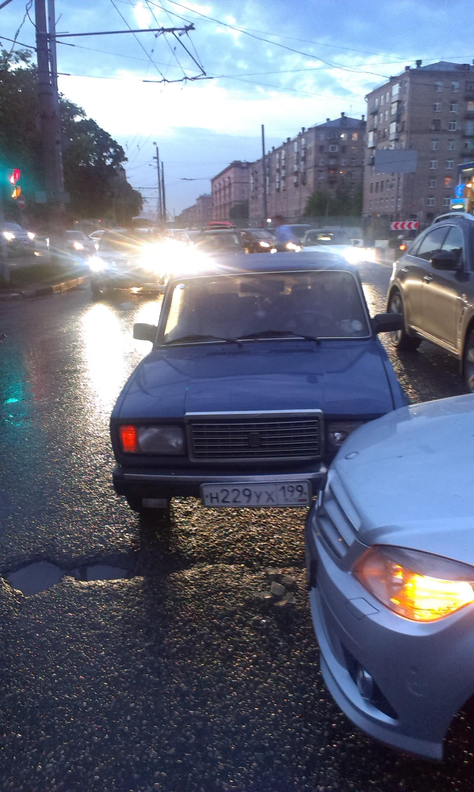 Произошло ДТП на перекрестке Песчаной улицы и Алабяна. Синий автомобиль - Жигули, проехал (пролетел!) на красный свет светофора (сторона, которая едет к улице Народного Ополчения) и врезался в мою машину, перелетев через пешеходный переход. За рулем Жигулей был парнишка лет 20 из Узбекистана. Если его не накажут в этот раз (он утверждает, что ехал на зеленый), в следующий раз он собьет людей... Камер, к сожалению, как выяснилось, на Алабяна нет.