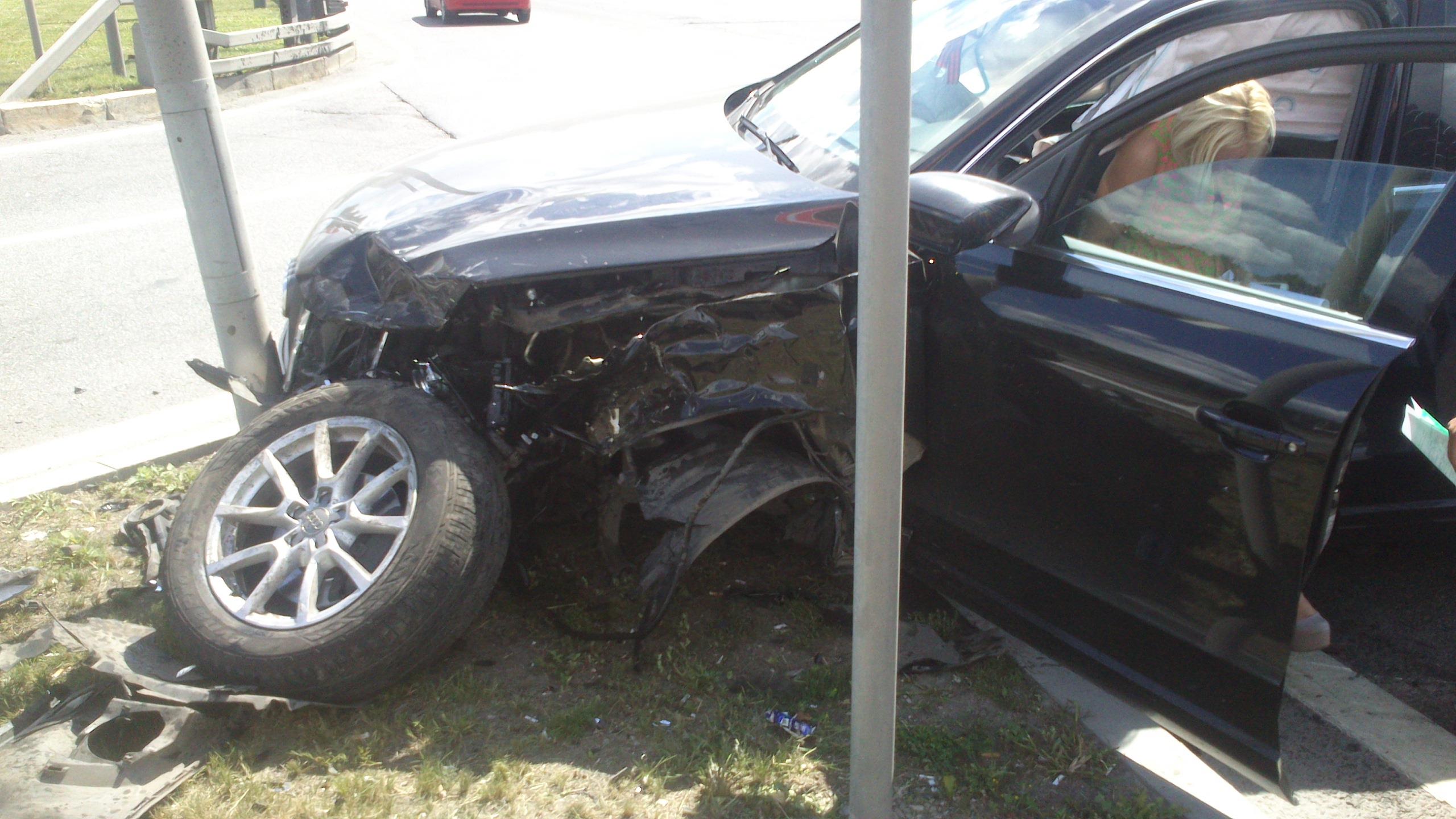 Столкновение AUDI Q5 и HONDA CR-V на пересечении ул. Авиаконструктора Сухого и Ленинградского проспекта при движении в центр, в районе дома 33