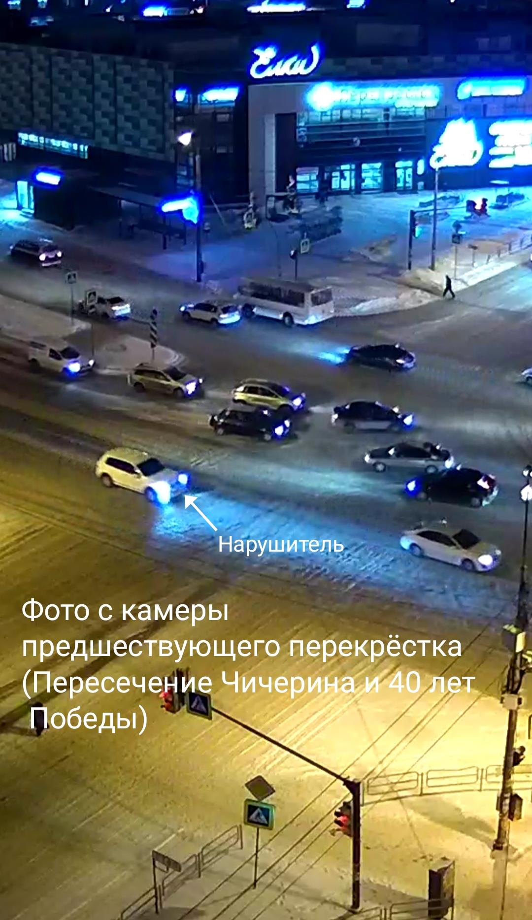 Автомобиль белый БМВ ехал со стороны улицы Бейвеля, виляя и выходя на встречную полосу. Напротив скорой помощи (Чичерина 10) вылетел на встречную полосу и въехал в автомобиль Lada Kalina. Далее нарушитель скрылся