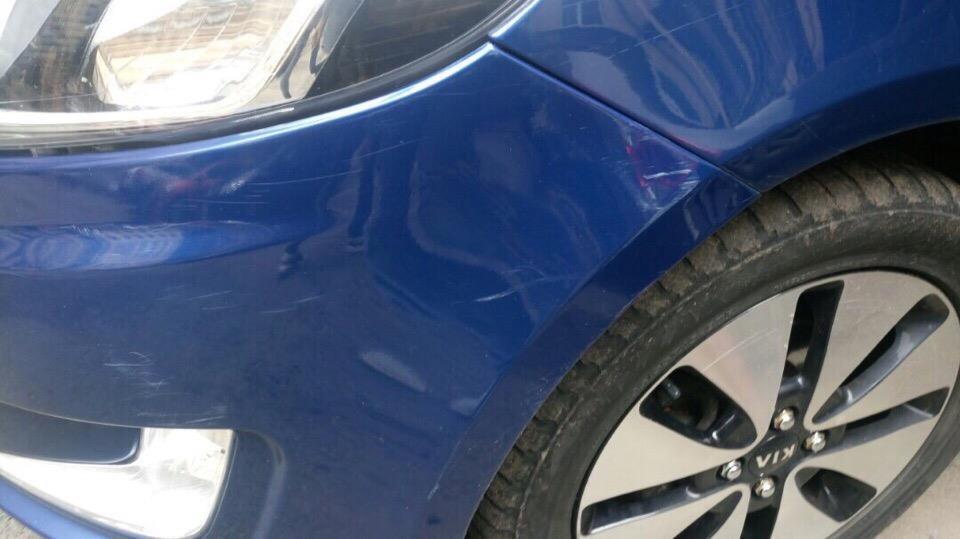 задний бампер в царапинах, передний правый брызговик треснут, царапина на двери с правой стороны, на заднем стекле наклейка ребё