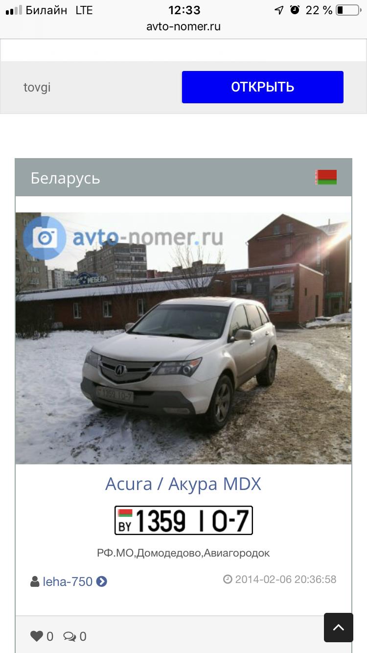 18.01.2019 г. Угнан Acura MDX белого цвета от магазина Верный на ж/д станции Белые Столбы г/о Домодедово вместе со всем содержимым малыша (автокресло, коляска и т.п.). Гос.номер 1359 io-7 (белорусский учет) VIN 2HNYD28357H529672 это же время на этой же станции вскрыли но не смогли угнать Honda CRV. До этого здесь же угнана Honda Civic. Все трое незадолго до угона посещали ТЦ Кэмп на Каширском шоссе, г. Домодедово. Прошу сообщать любую полезную информацию по тел 89161057936