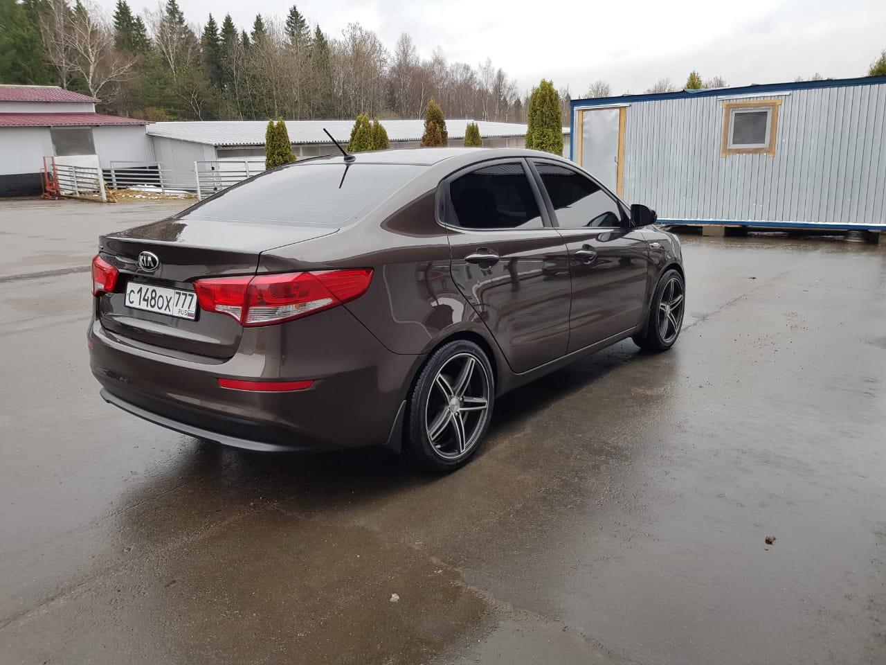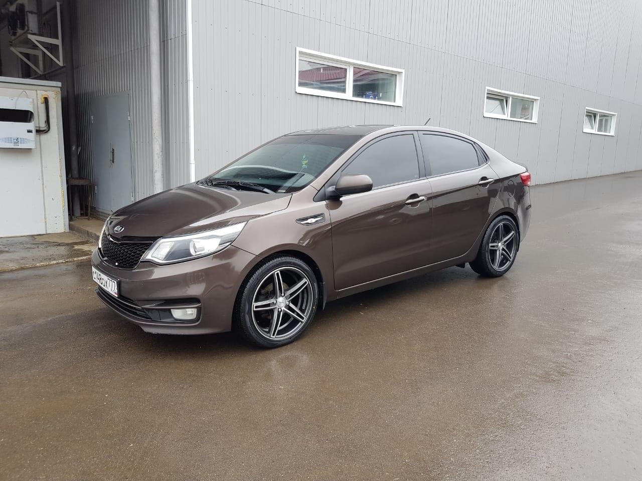 Автомобиль киа Рио, коричневый цвет, литые диски r17, тонировка заднего стекла, и 4 пассажирских