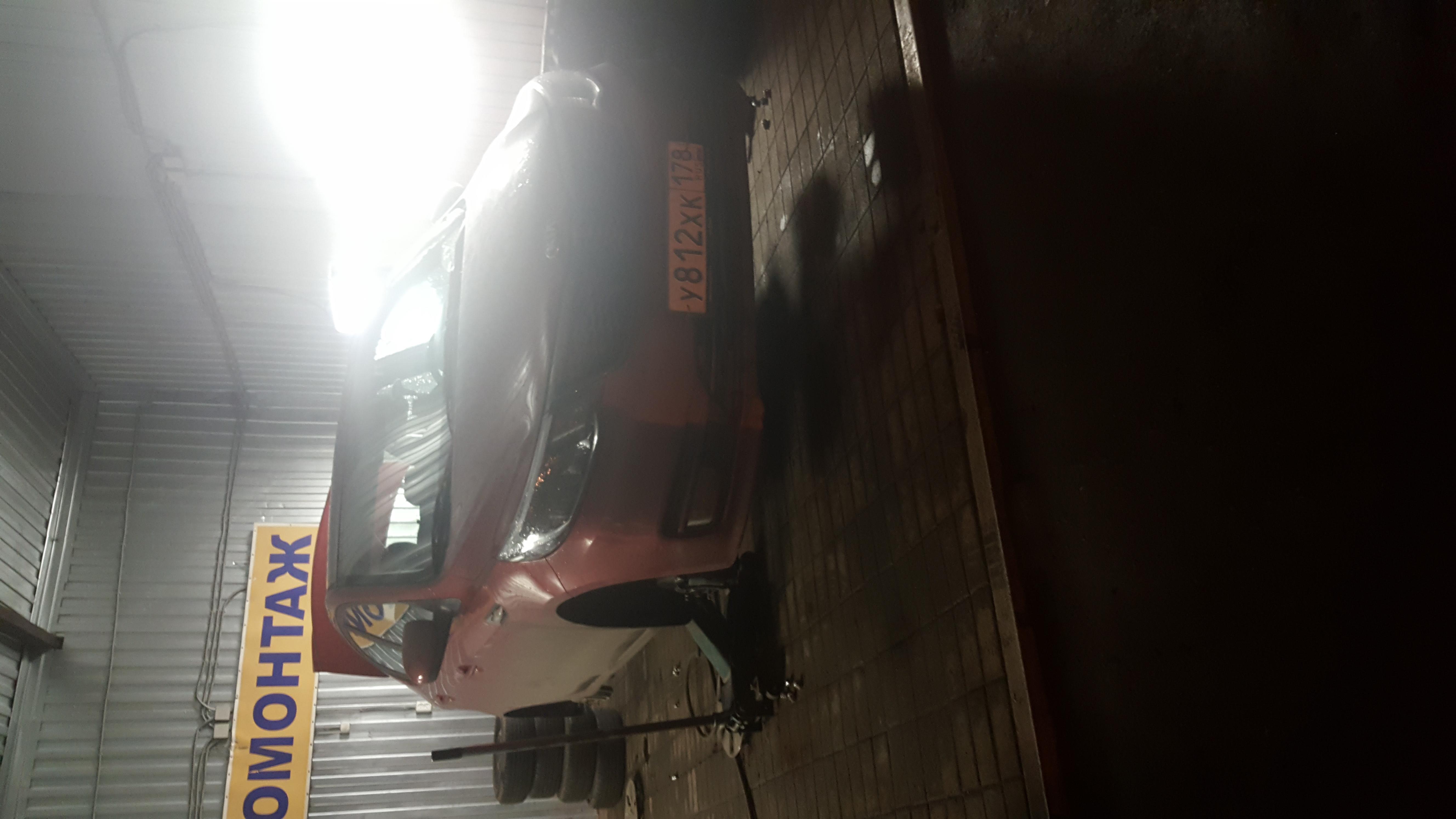 Мятая задняя дверь.Седан.царапина на правом зеркале на красной части